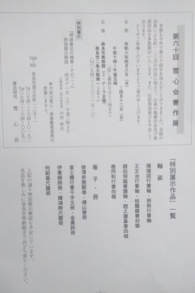 新書鑑3号発送しました。今年で雪心会書作展も60回目を迎えます。
